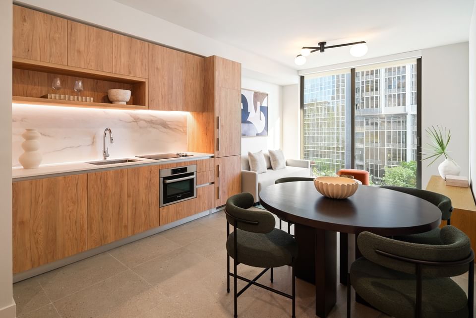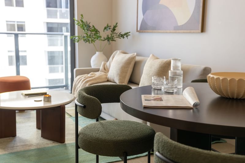 A collection of curated amenities transforms The Crosby into a destination for work, wellness, and play. Enjoy a rooftop lounge with a hot tub, private dining and bar experiences coming soon, a coworking lounge with meeting spaces, dedicated wellness spaces, an on-site movie lounge, and vibrant social venues. It is modern living with everything you need in one place.